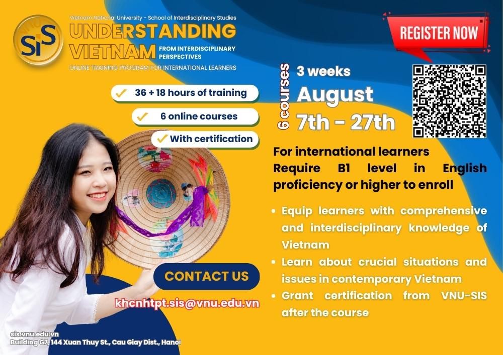 To meet the increasingly rapid integration needs of Vietnam with international partners, as well as to equip international learners living in Vietnam or working with collaborators from Vietnam, the VNU School of Interdisciplinary Studies has implemented the short-term online training program “Understanding Vietnam from Interdisciplinary perspectives.” This is the first training program in Vietnam that has the capability to provide learners with comprehensive knowledge about Vietnam, especially regarding contemporary society. The program will help learners gain a profound and diverse understanding of Vietnam. The details of the course are as follows: