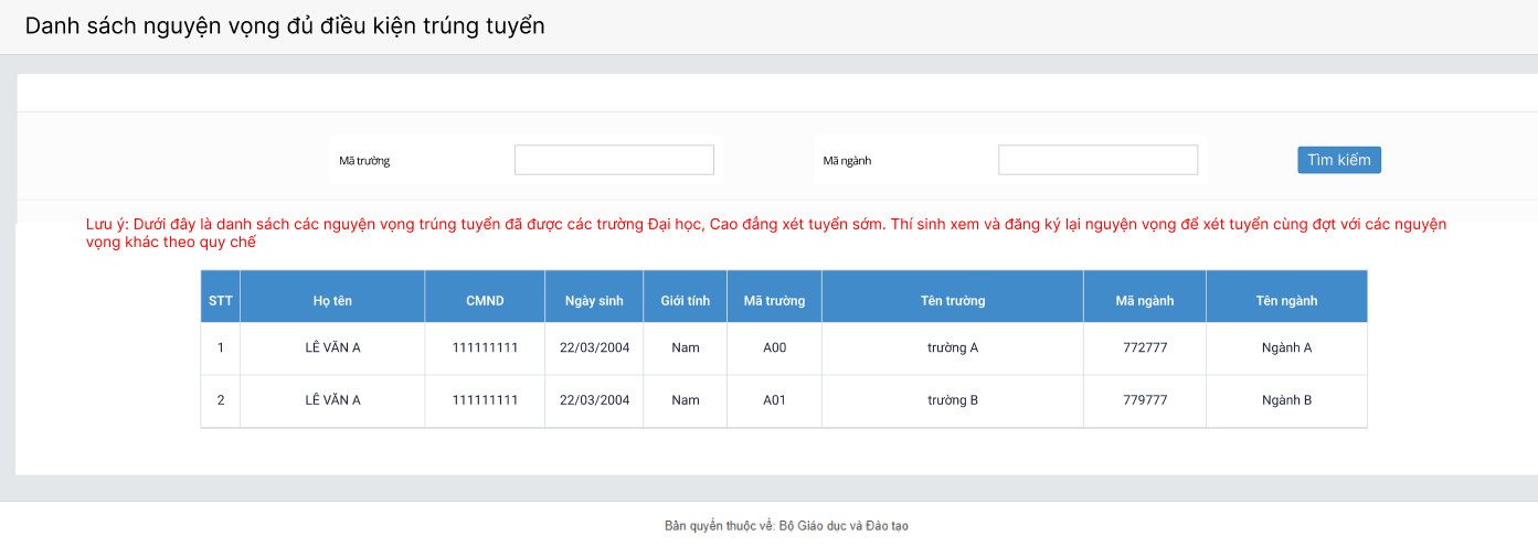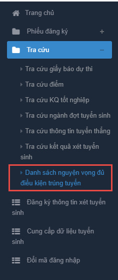 1.2. Danh sách nguyên vọng đủ điều kiện trúng tuyển
