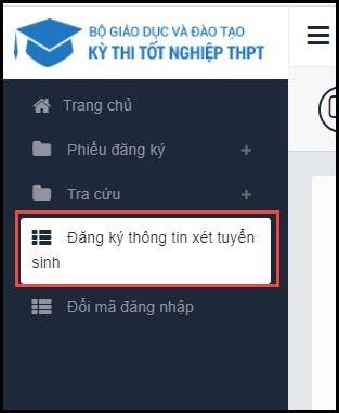 Bước 1: Chọn chức năng Đăng ký thông tin xét tuyển sinh