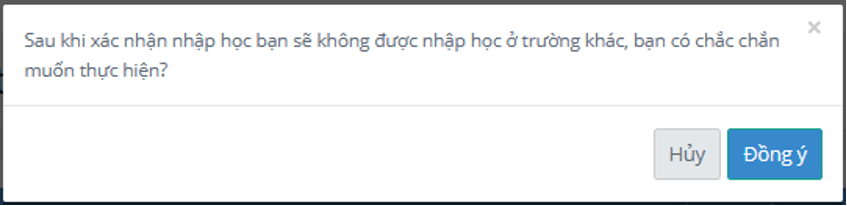 Lưu ý: Khi đã xác nhận nhập học xong, thí sinh sẽ không được Hủy xác nhận nhập học nếu muốn Hủy xác nhận nhập học phải liên hệ với trường Đại học đó để giải quyết.